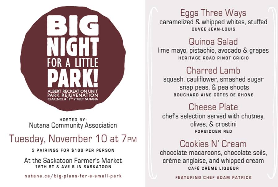 Check out the Big Night for a little Park! An event, hosted by the Nutana Community Association. Tickets can be found here: